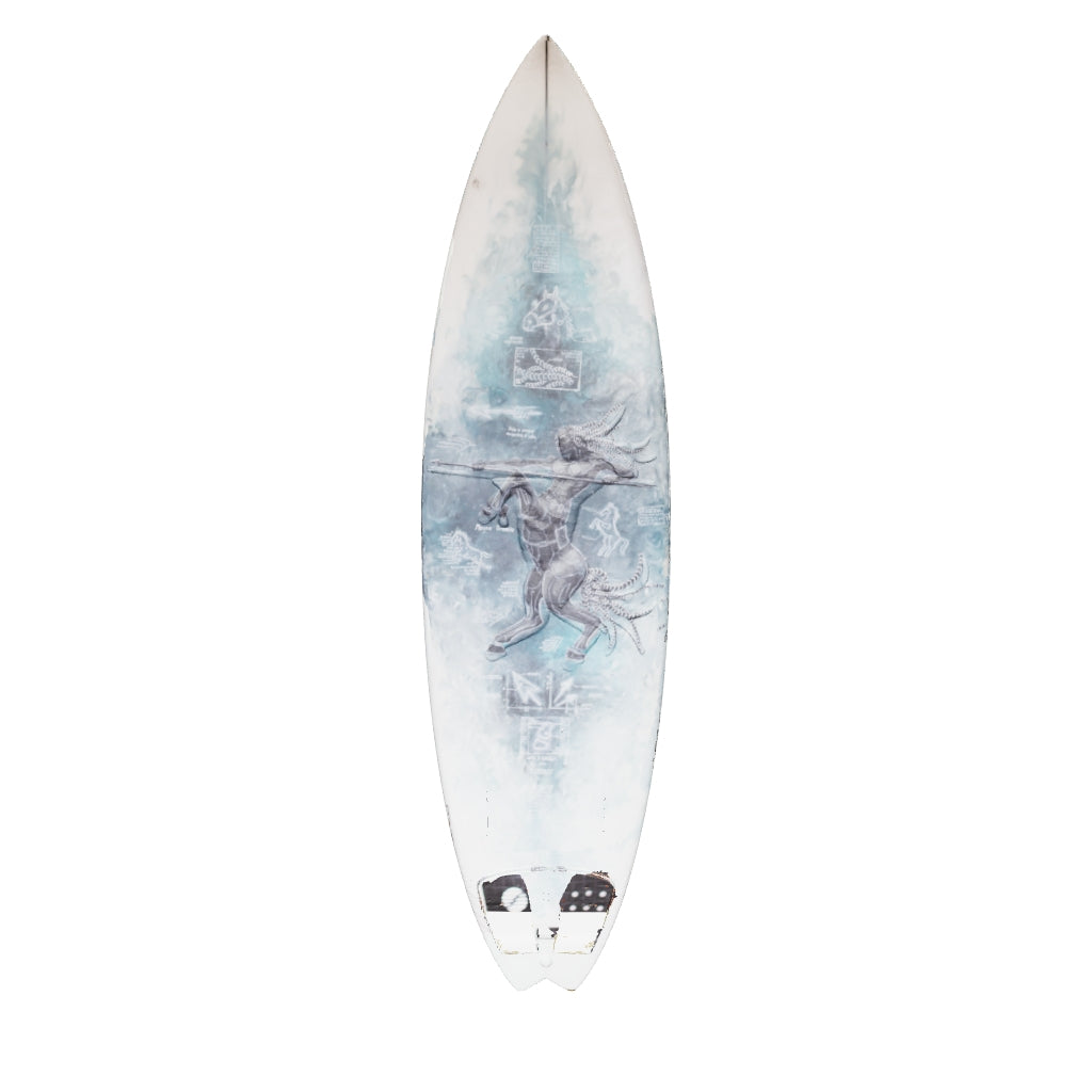 The result is a hand-painted tribute to the Atlantic, sealed with resin and carrying the authentic surf wax from its first waves.