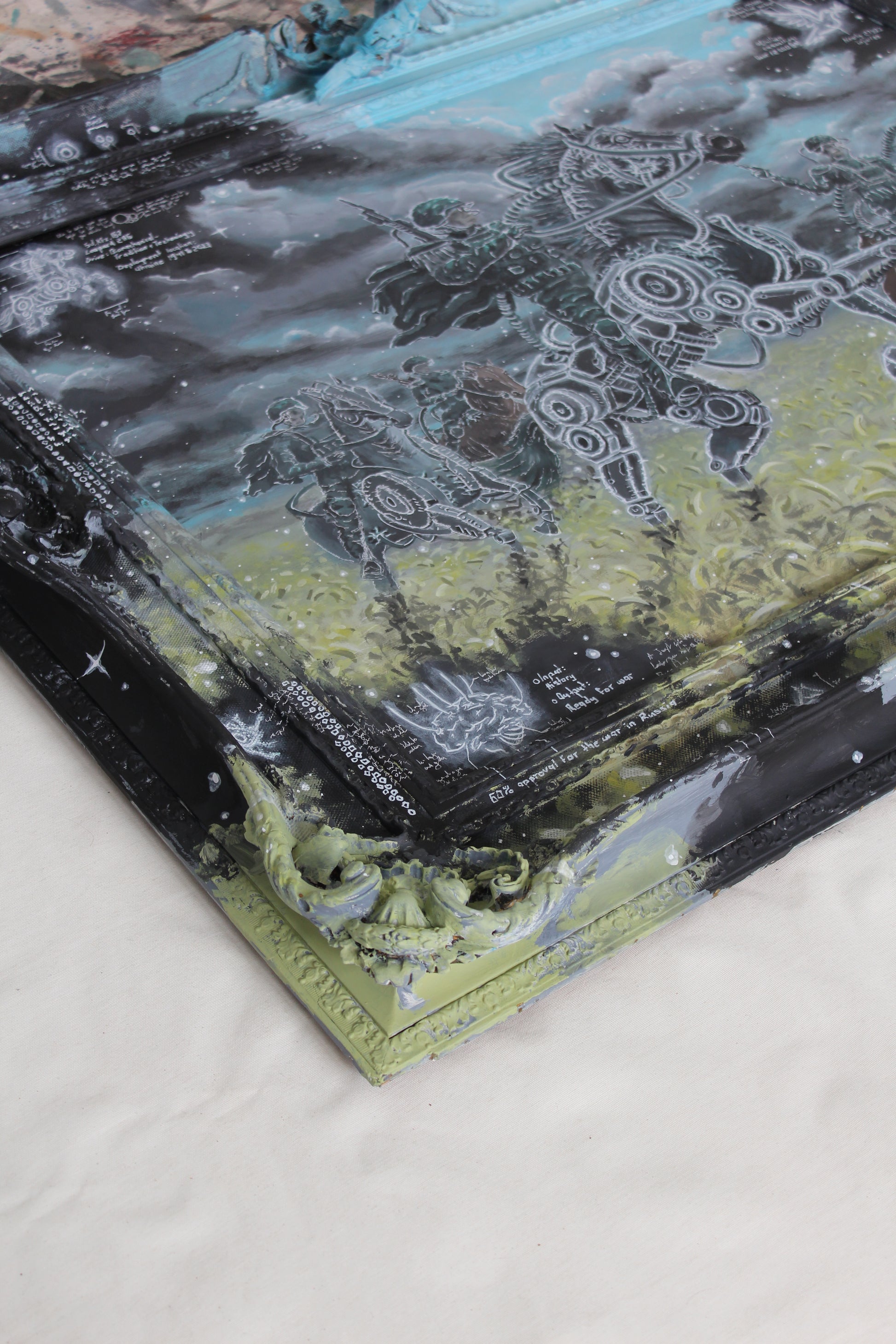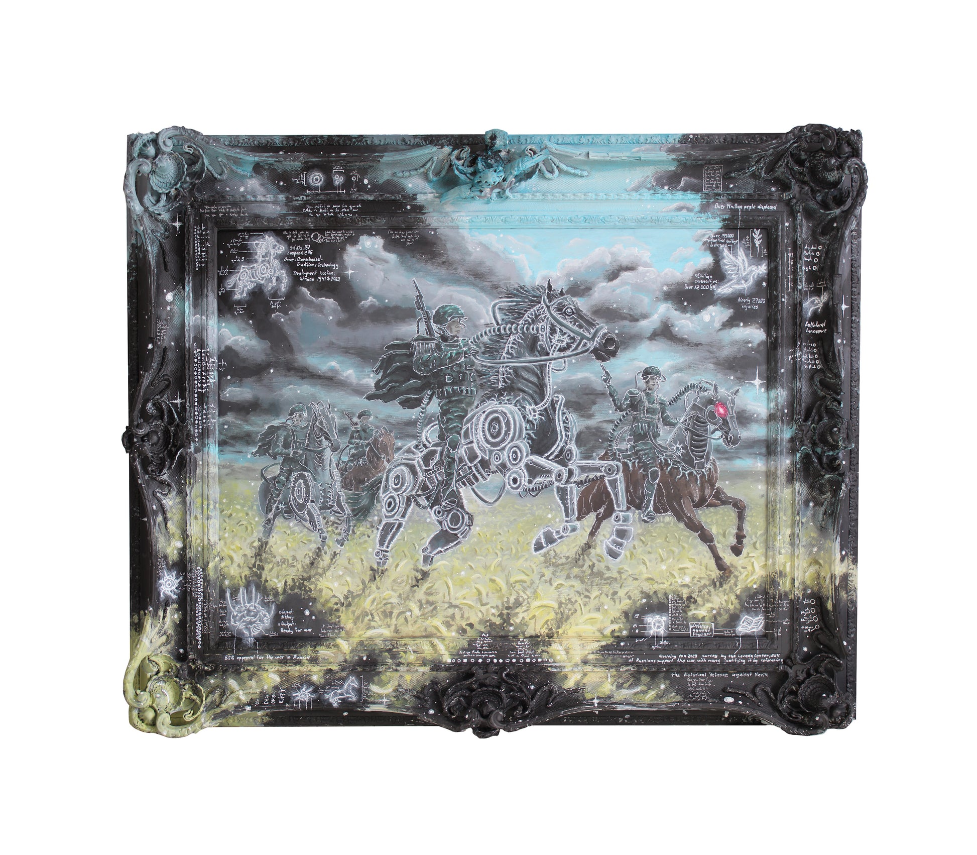 Riding Forever depicts modern commanders riding cyborg horses across the wheat fields of Ukraine. Horses, traditionally symbols of old warfare, are here reimagined as machines — a metaphor for how the violence of the past is revived in contemporary form. The work explores the repetition of war throughout history and how historical narratives — particularly from World War II — are instrumentalized to justify new conflicts. Past and present merge into a continuous cycle of power, destruction, and ideological reuse.